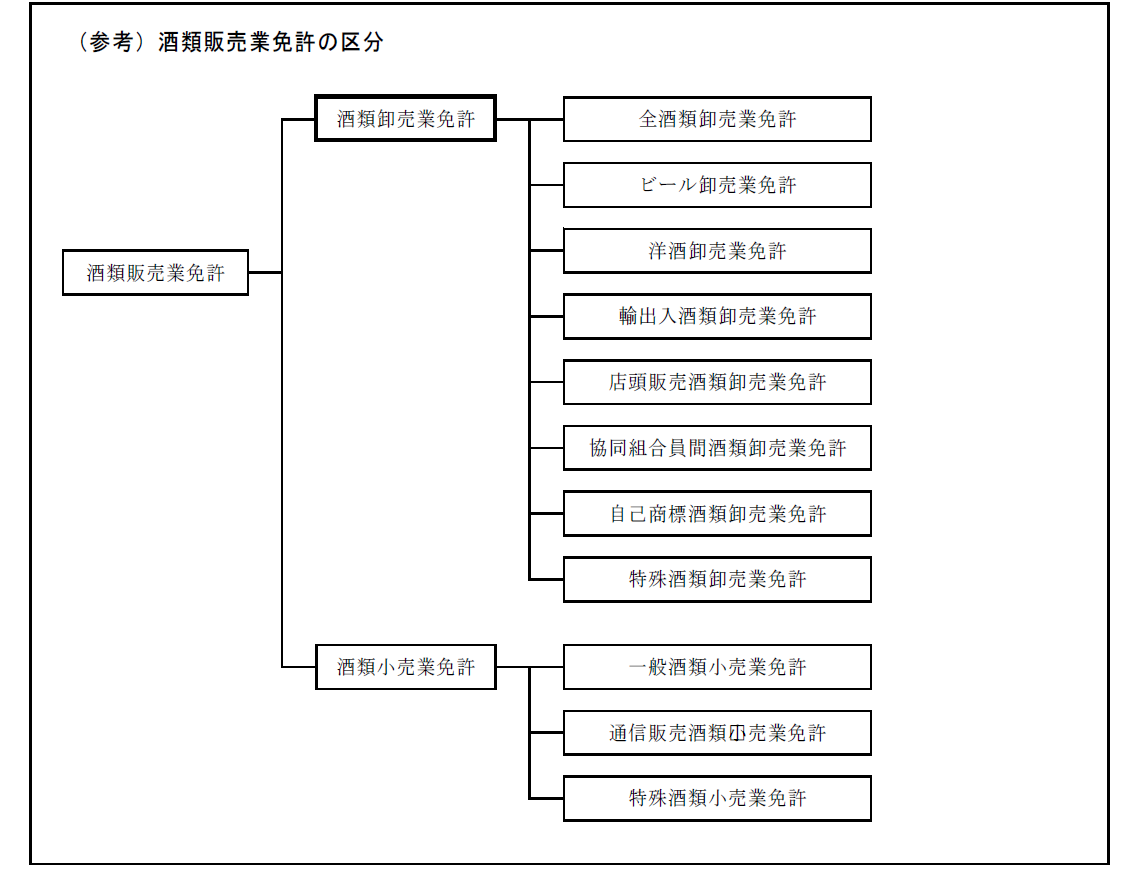 酒類の販売業をしようとする場合には、酒税法の規定に基づき、販売所ごとに、その販売所の所轄税務署長から酒類販売業免許を受ける必要があります。